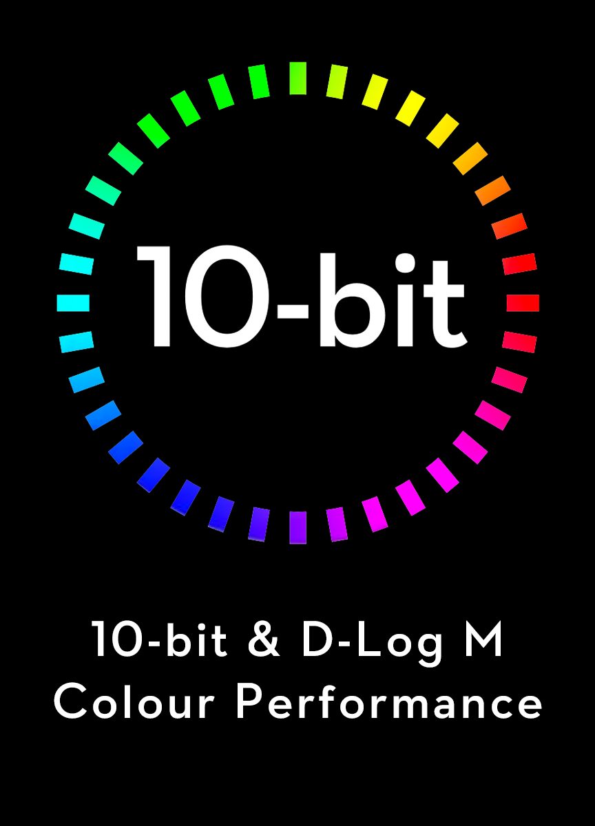 10-bit D-Log M colour mode gives you over one billion colours and a wider dynamic range to play with in post.