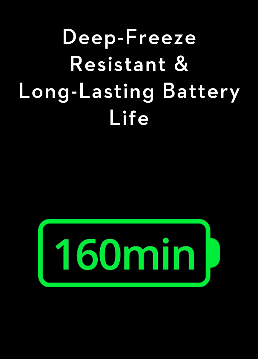 A freeze-resistant battery design lets your creativity thrive, even when things get frosty. Enjoy up to 150 minutes of recording in temps as low as -20°C (-4°F).