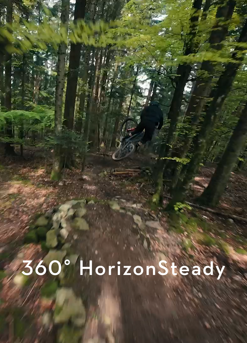 HorizonSteady uses DJI's latest stabilization algorithm to correct shakes for any horizontal rotation (360°) and lock onto a leveled horizon in every frame, regardless of how the camera is mounted or worn. It allows you to capture smooth and stable footage whether you are cycling on bumpy roads or go-karting around a track.