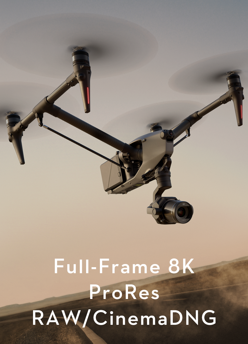 DJI’s lightest-ever full-frame three-axis gimbal camera, the X9-8K Air, is custom-built for Inspire 3 to take drone cinematography to the next level. It features DJI’s latest image processing system, CineCore 3.0, supporting internal recording of up to 8K/25fps CinemaDNG video as well as 8K/75fps Apple ProRes RAW video, meeting the needs of top-class film and television productions. 8K means ultra-high-resolution aerial footage that retains true-to-life texture close to what the human eye sees, with clarity that stuns audiences when displayed on larger screens. RAW brings X9-8K Air's sensor fully into play, providing abundant space for visual effects and color grading.