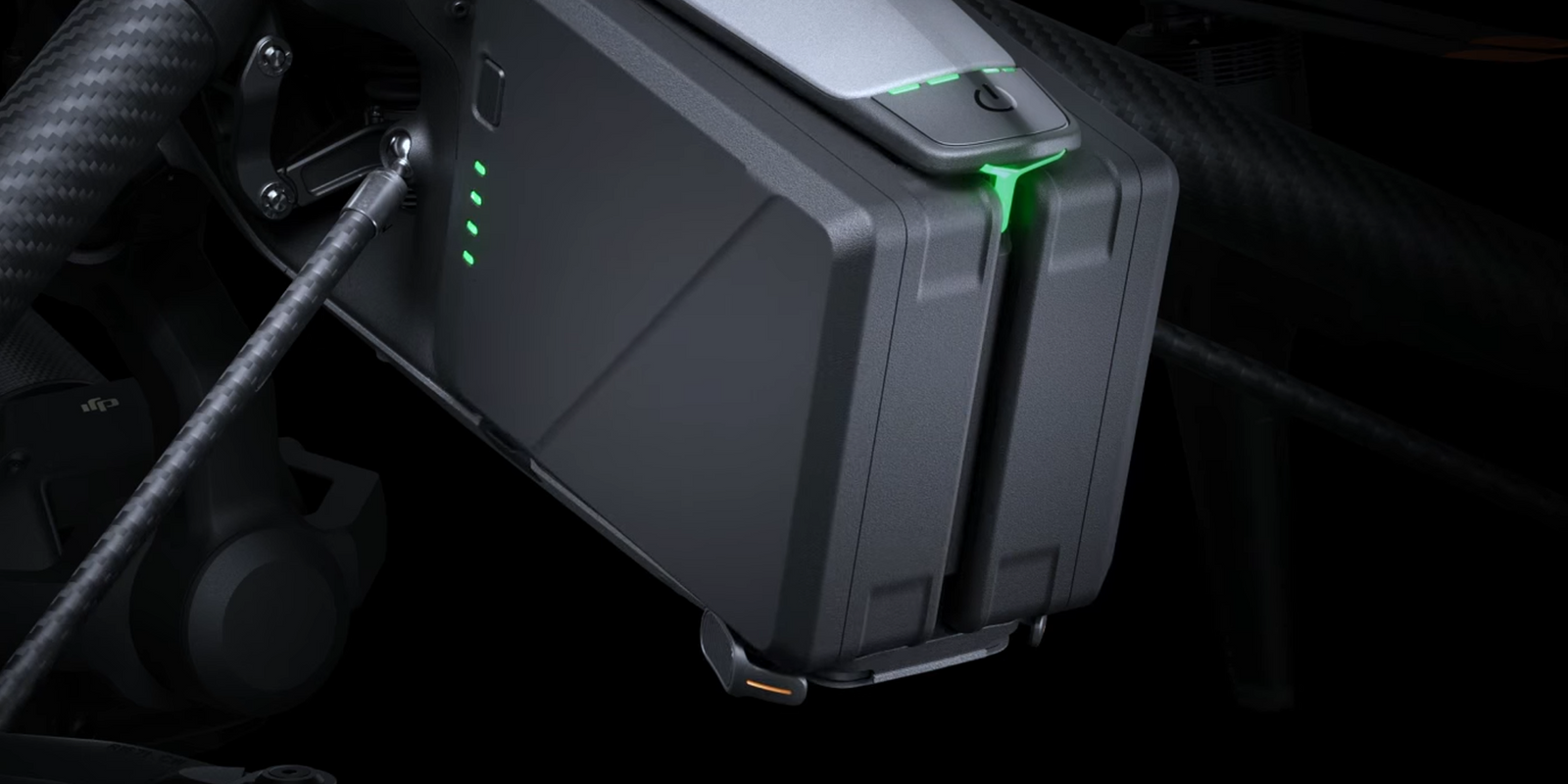Battery: DJI Inspire 3 is equipped with six TB51 intelligent batteries and an all-new battery charging hub. TB51 batteries utilize the latest battery chemistry technology for optimized reliability and performance, and are smaller, lighter, more streamlined, and higher voltage compared to TB50. They provide a 28-minute max flight time and support hot swapping. The all-new foldable battery charging hub can accommodate eight batteries. In Fast mode, it can charge two batteries to 90% in just 35 minutes and eight batteries to 100% in only 160 minutes. The included 65W USB-C port can also be used to charge an RC Plus.