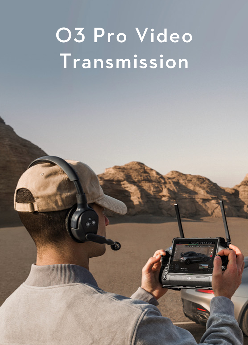 DJI Inspire 3 adopts the all-new O3 Pro video transmission system, which supports simultaneous video transmission of the gimbal camera and the FPV camera. Both the gimbal camera and FPV camera support HD, 1080p/60fps live feeds with latency as low as 90 ms. 4K/30fps UHD live feeds are also supported to meet the needs of monitoring and livestreaming on set.