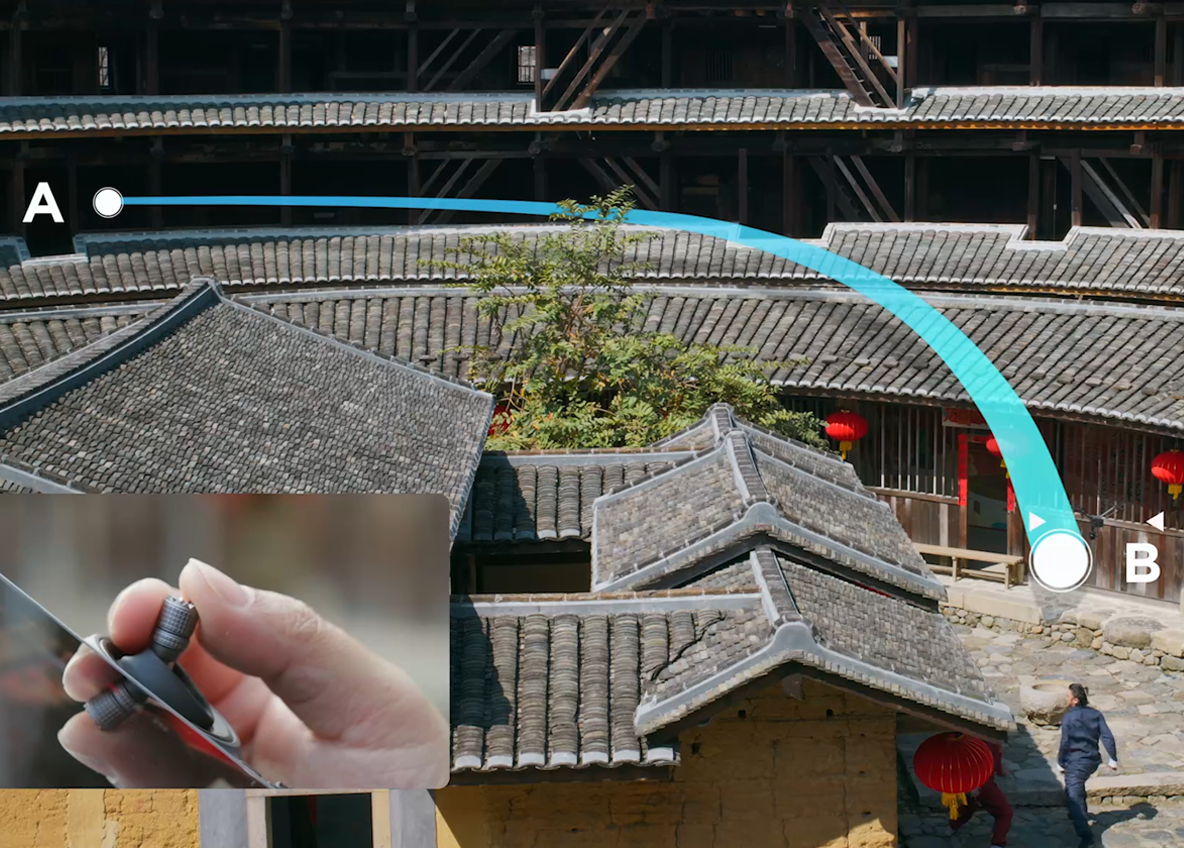 3D Dolly can simulate a crane, cablecam, or dolly on film sets while going far beyond the limitations of those devices. After planning a flight route, the cinematographer can manually control the aircraft to move along the route back and forth while adjusting parameters such as speed, gimbal angle, and more according to the needs of the shot. This makes complicated cinema-grade camera movements easier and more efficient and can deliver improved visual effects.