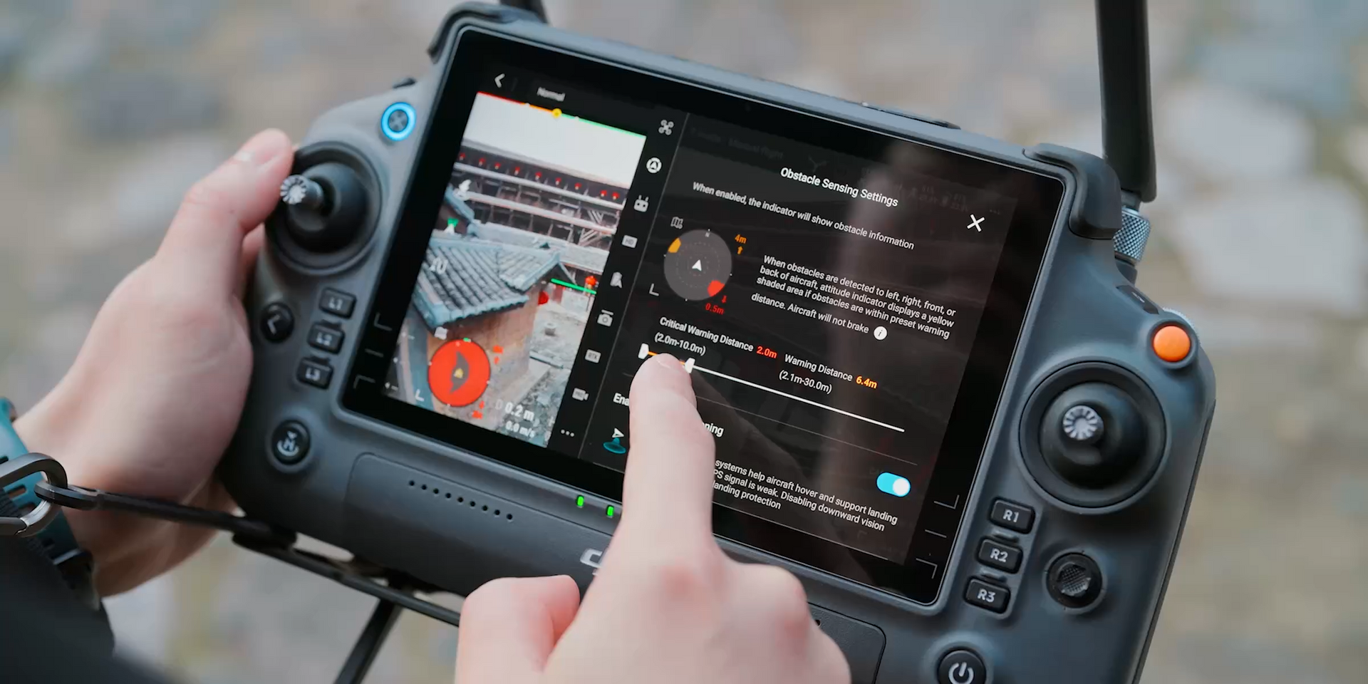 In addition, Inspire 3 features a new customisable function to help ensure greater flight safety and more creative freedom. Horizontal, upward, and downward obstacle sensing can be enabled or disabled independently, and an obstacle alert range can be manually set to suit different scenarios. When active avoidance is turned off, users can still view the distance from an obstacle on the navigation display in real-time and receive an audio alert when an obstacle is within a set range without the aircraft performing an automatic avoidance movement. This brings new possibilities to professional aerial teams that want to achieve more complex camera language.