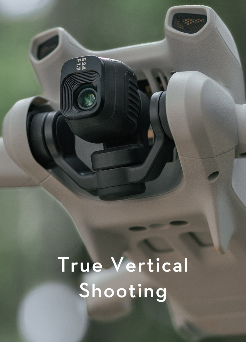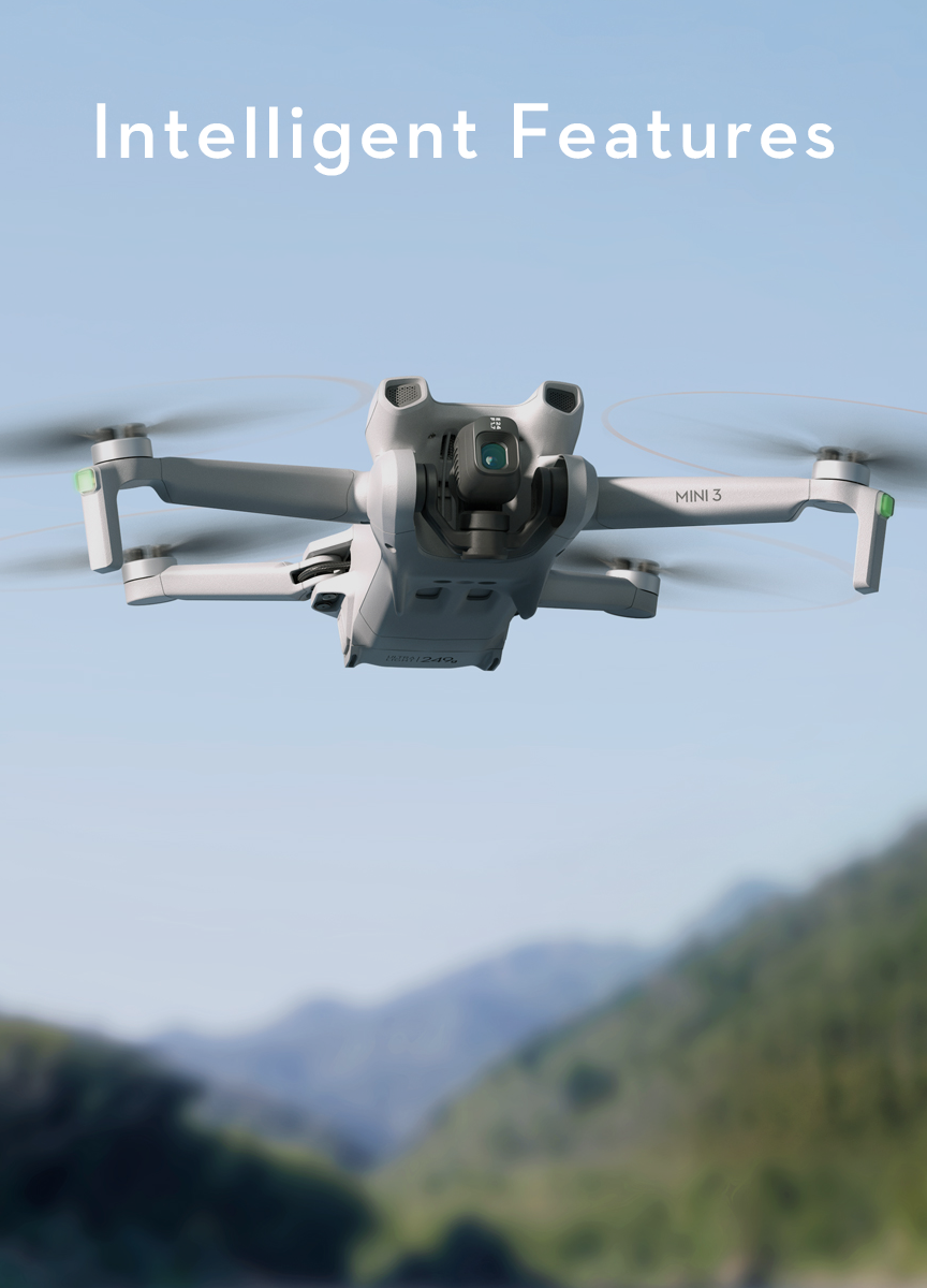 DJI Mini 3 combines powerful imaging performance with intelligent features, allowing even beginners to create cinematic footage effortlessly. It is equipped with a 1/1.3-inch sensor, 2.4μm (4-in-1) large pixels, an f/1.7 aperture, dual native ISO, chip-level HDR technology, and can record 4K HDR videos. It also supports QuickShots (Dronie/Circle/Helix/Rocket/Boomerang) and True Vertical Shooting.