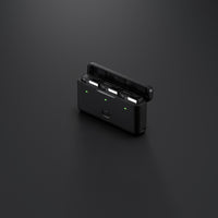 Stores three batteries and two microSD cards. Intelligently fast charges three batteries, and can be used together with those batteries as a power bank to charge other devices like a smartphone.