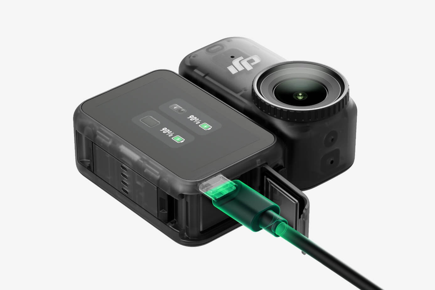 The Multifunctional Vision Dock supports fast charging for both the camera and itself. When charging the Osmo Nano main camera, it only takes 20 minutes to reach 80% battery level. When attached to the camera and fully charged, the setup can record up to 200 minutes of 1080p/24fps video.