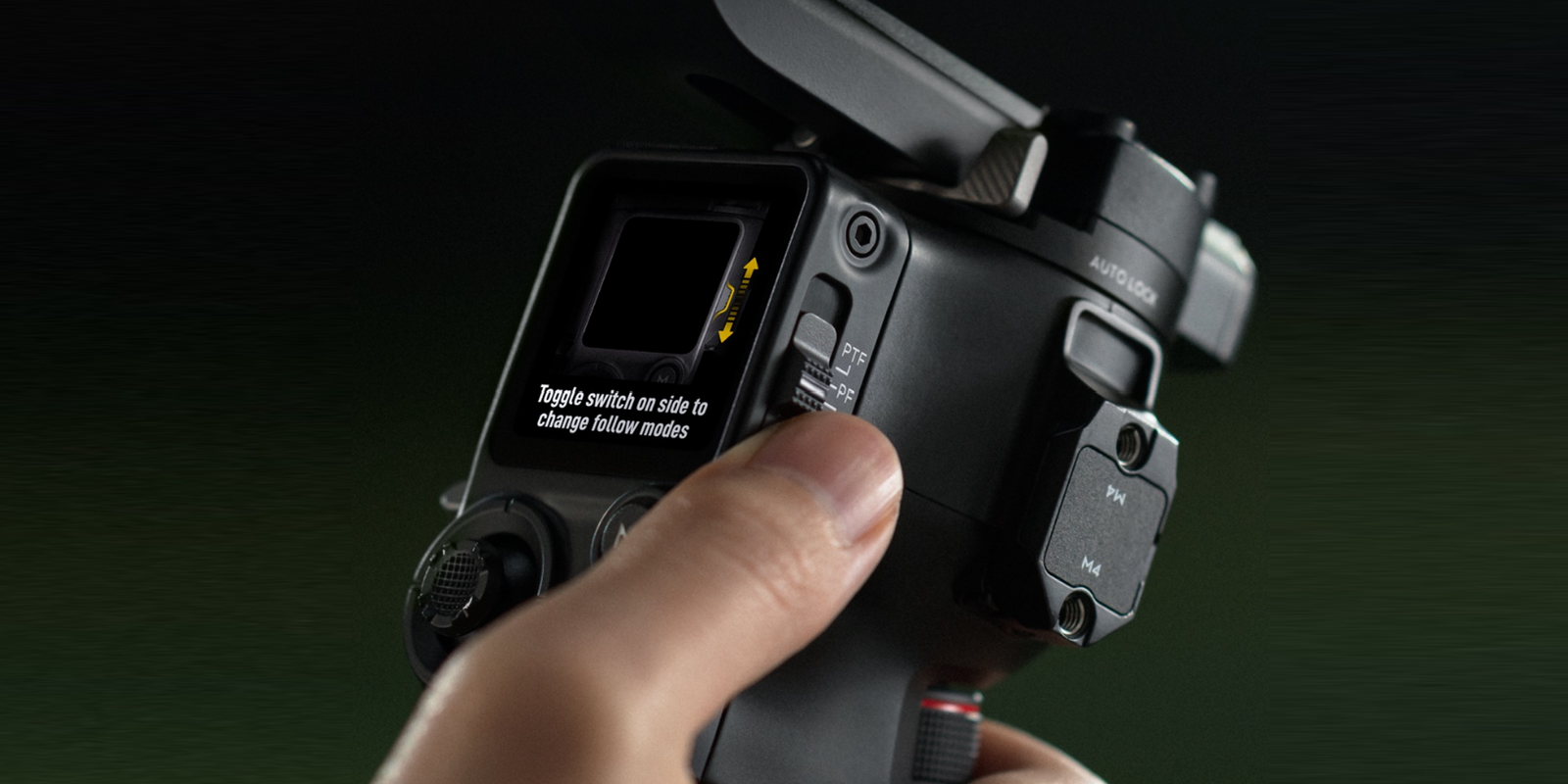 ‌By toggling the gimbal mode switch, you can quickly switch between PF, PTF, and FPV modes. You can also set FPV mode to 3D Roll 360 mode or Custom mode according to the shooting requirements, ensuring RS 4 is precision-ready.