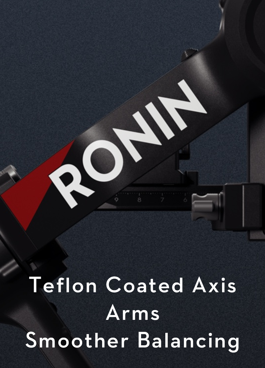 DJI RS 4 features a Teflon™ coating for all three axes, resulting in reduced friction and smoother balancing. When switching cameras or lenses, the fine-tuning knob on the tilt axis can move the camera forward or backwards, achieving precise, millimeter-level balancing. The upper quick-release plate has an added adjustable placement guide to ensure secure camera mounting.