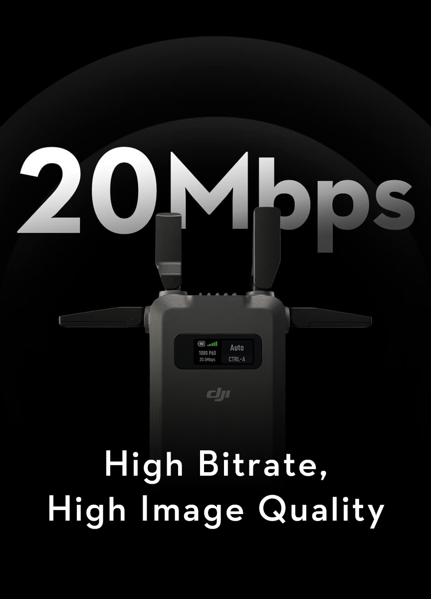 DJI SDR Transmission supports 1080p/60fps live feeds, with a high bitrate of up to 20 Mbps, ensuring smooth monitoring and collaboration.