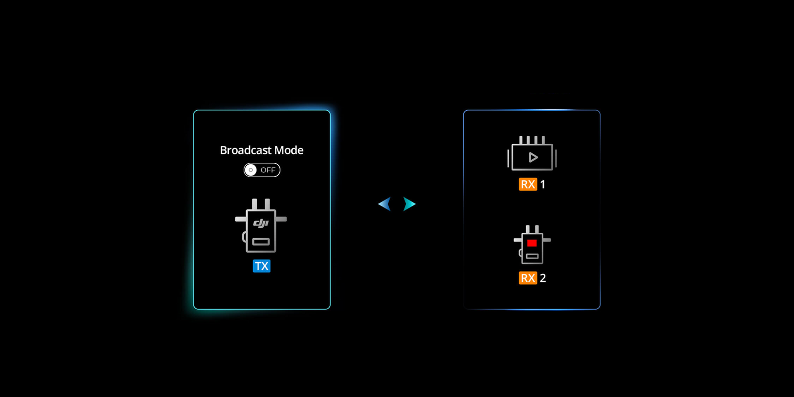 In Control mode, two DJI High-Bright Remote Monitors can be connected at the same time. In Broadcast mode, an unlimited number of receivers can be connected.