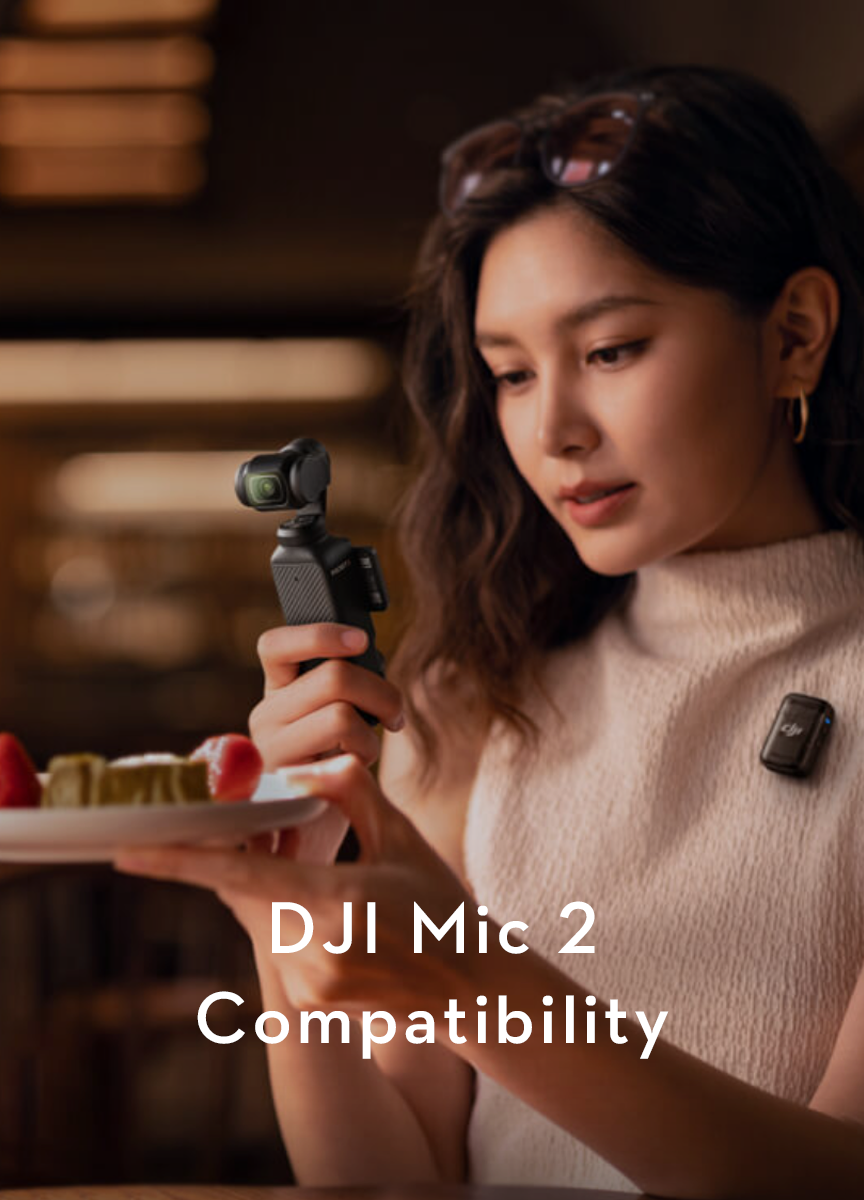 With the built-in Wi-Fi & Bluetooth module, Pocket 3 can directly connect to two DJI Mic 2 Transmitters, giving you ultra-clear recording for vlogs, interviews, livestreams, and more.