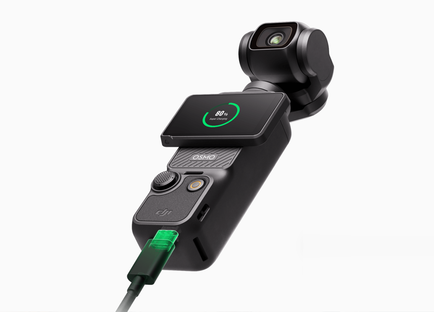 Pocket 3 can be charged to 80% in just 16 minutes, providing up to two hours of shooting. When fully charged, it can record up to 116 minutes of 4K/60fps footage or up to 166 minutes of 1080p/24fps footage, giving you more time to get the shots you love.
